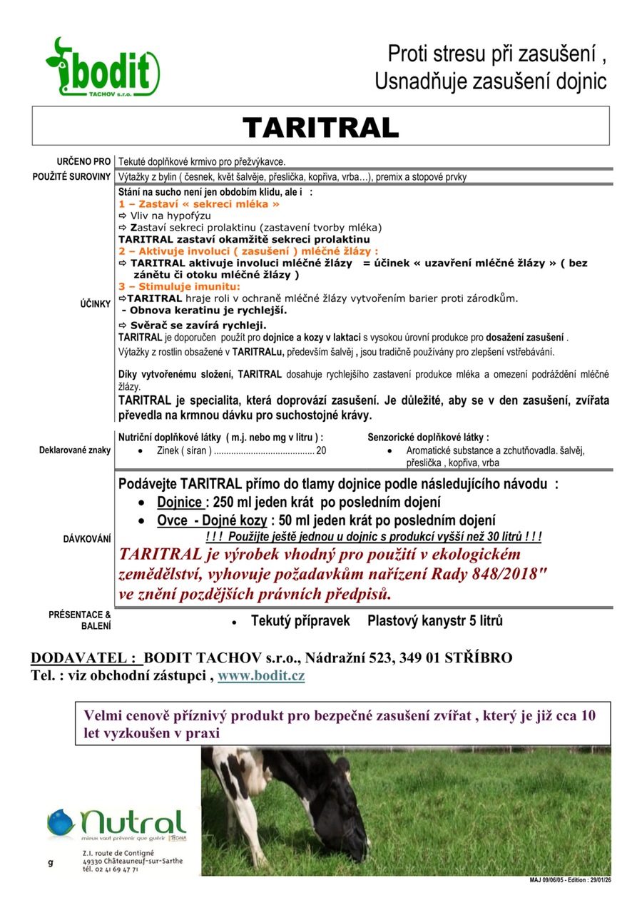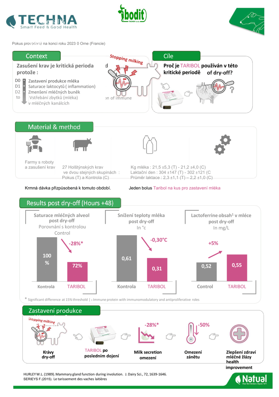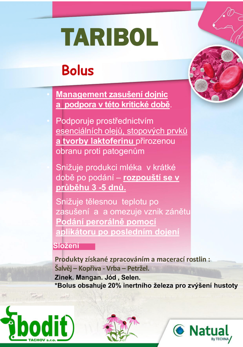 - použití bolusu TARIBOL – aplikace pomocí aplikátoru po posledním dojení