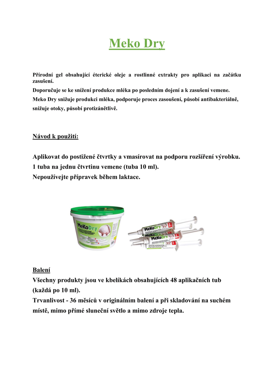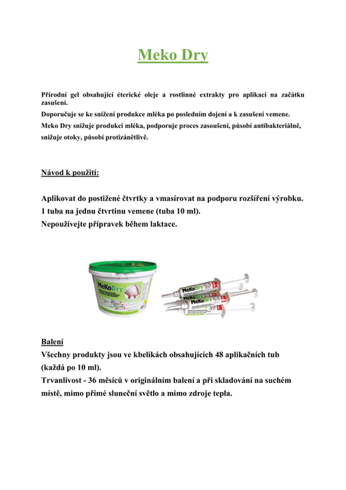 - použití aplikátorů do vemen MEKO DRY – jedna dávka na struk